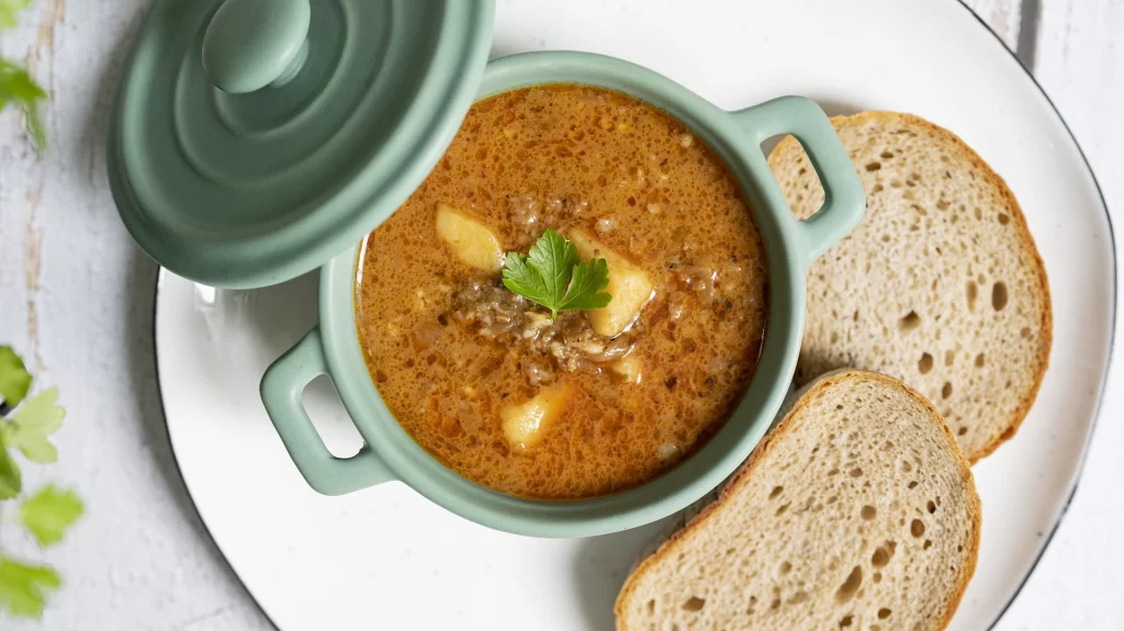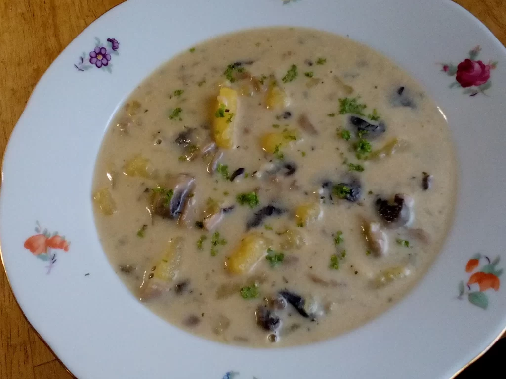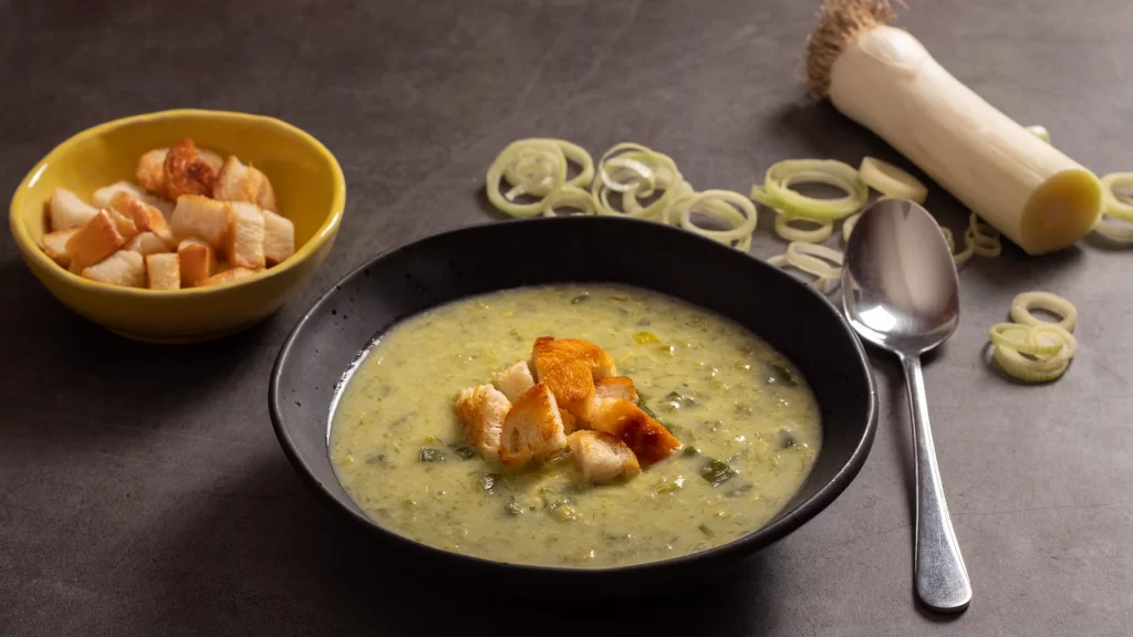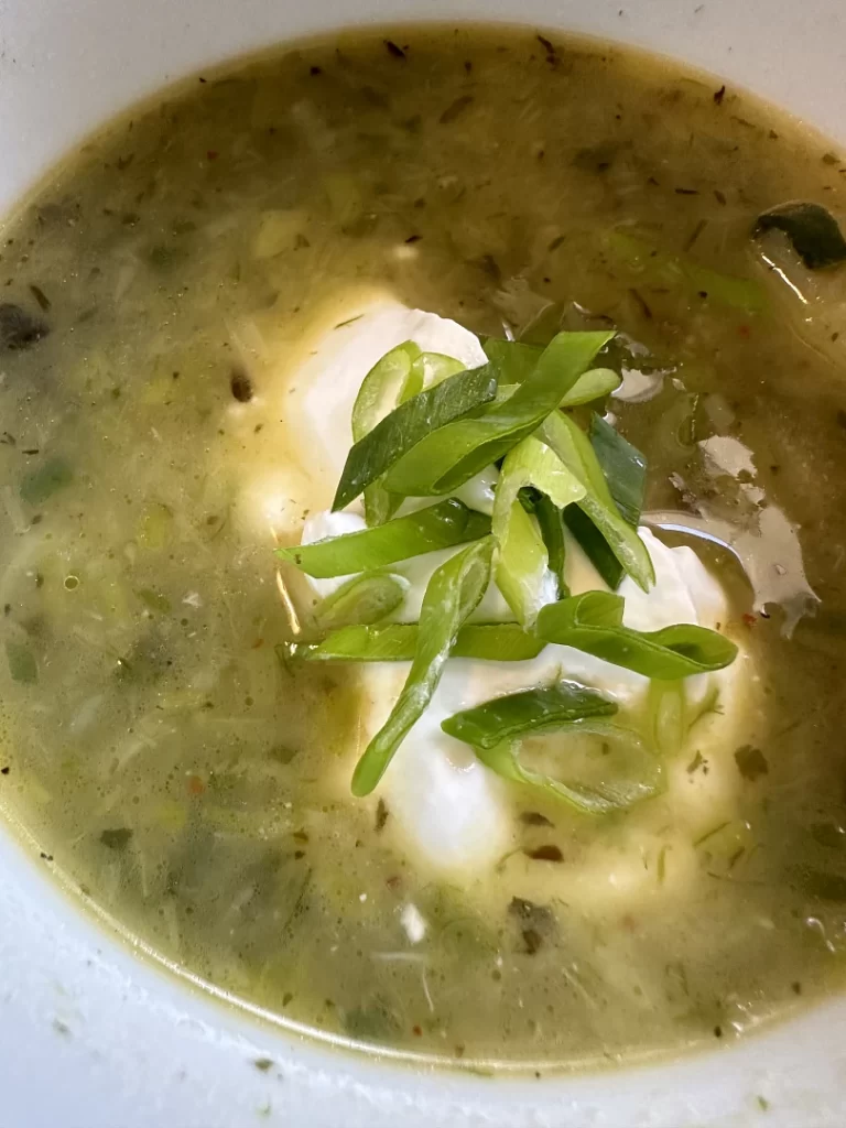 Kuřecí krémová polévka s rukolou a medvědím česnekem